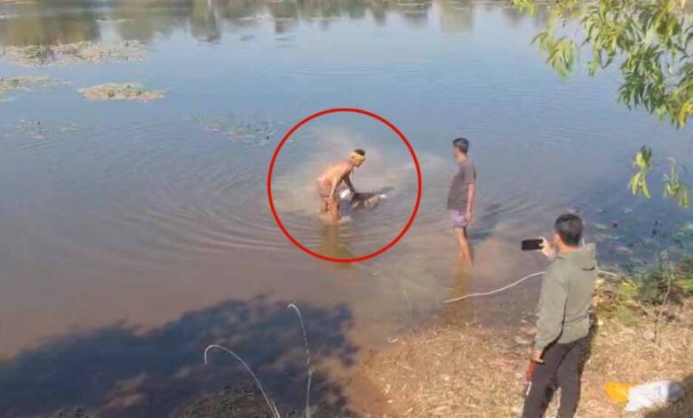 घटनास्थल पर मौजूद ग्रामीणों का कहना है कि युवक की पहचान अब तक नहीं हो सकी है। प्रारंभिक जांच में यह सामने आया है कि युवक के शरीर पर पत्थर बांधकर उसे पानी में फेंका गया था।