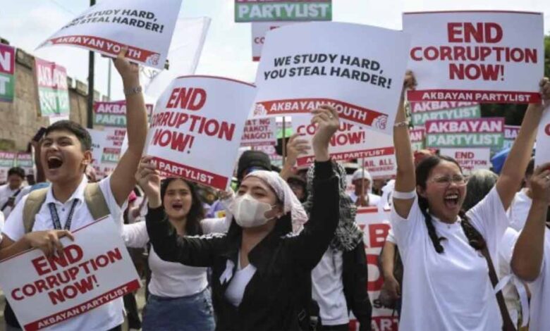 नेपाल के बाद अब फिलीपींस में भी सरकार के खिलाफ लोगों में जबरदस्त आक्रोश व्याप्त हो गया है। हजारों की संख्या में लोग सड़कों पर उतर आए हैं। रविवार को फिलीपींस की राजधानी मनिला में हज़ारों प्रदर्शनकारियों ने सड़कों पर उतरकर अपना गुस्सा जताया। प्रदर्शनकारियों की भीड़ इतनी अधिक थी कि पुलिस के लिए उनको संभाल पाना मुश्किल हो गया।