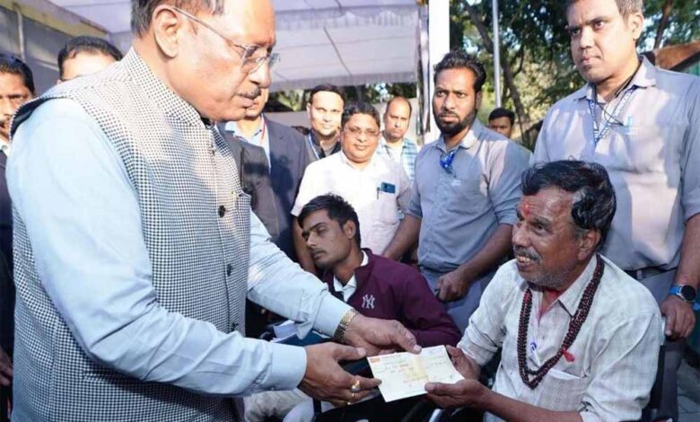 मुख्यमंत्री श्री साय ने सूरज नगर लाभांडी, रायपुर निवासी 17 वर्षीय दिव्यांग राज शर्मा को दोनों पैरों से दिव्यांग होने के कारण 20 हजार रुपए की तात्कालिक आर्थिक सहायता का चेक प्रदान किया। इसके साथ ही श्री फूल गिरी गोस्वामी को पुत्री के विवाह हेतु 20 हजार रुपए की सहायता राशि दी गई। रायगढ़ निवासी दोनों पैरों से दिव्यांग ओमप्रकाश निषाद को उच्च शिक्षा के लिए भी मुख्यमंत्री द्वारा 20 हजार रुपए की आर्थिक सहायता तत्काल स्वीकृत की गई।