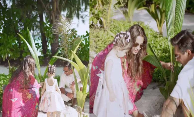 अभिनेत्री सोशल मीडिया पर एक से बढ़कर एक पोस्ट साझा करती रहती हैं और प्रशंसकों को अक्सर नए झलक दिखाती रहती हैं। अभिनेत्री पति और बेटी के साथ मालदीव में छुट्टियां मना रही हैं। उन्होंने हाल ही में अपने इंस्टाग्राम के स्टोरीज सेक्शन पर एक क्लिप डाली, जिसमें देवी समंदर किनारे बीच पर खेलती नजर आईं।