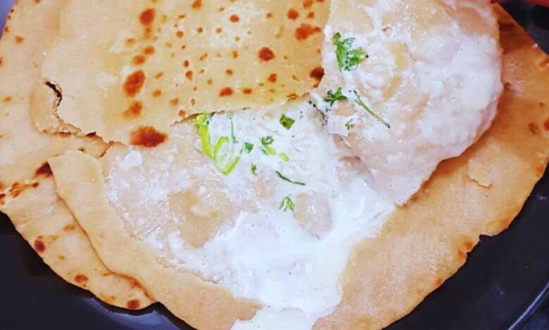 अब रोटी को तिकोने या चौकोर आकार में मोड़ लें।