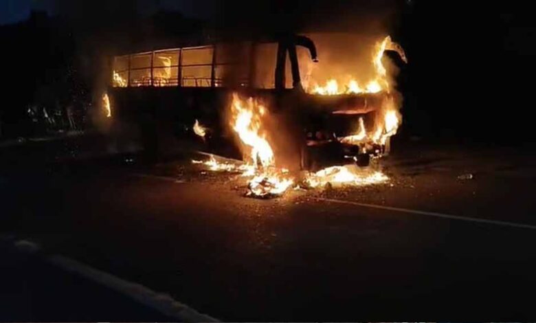 जयपुर से चलकर छतरपुर के बागेश्वर धाम जा रही एक वीडियो कोच बस टायर फटने के बाद आग की चपेट में आ गई। इस दौरान बस में सवार 16 यात्री नींद की आगोश में थे, लेकिन पुलिस की तत्परता और सूझबूझ से सभी की जान बच गई।