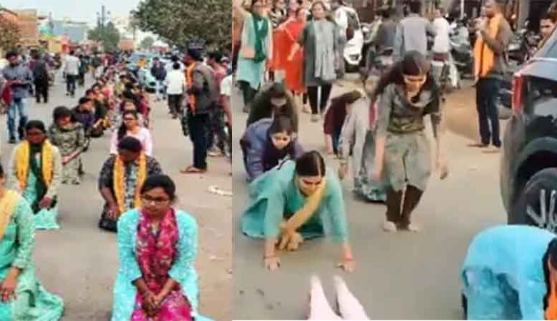 छत्तीसगढ़ में बर्खास्त बीएड सहायक शिक्षक राज्य सरकार को जगाने के लिये अर्धनग्न और दंडवत होकर प्रदर्शन कर रहे हैं। रविवार को लगभग पांच किलोमीटर तक दंडवत होकर यात्रा निकाली। इन शिक्षकों ने माना चौक से शदाणी दरबार तक सड़कों पर लेटकर विरोध जताया।