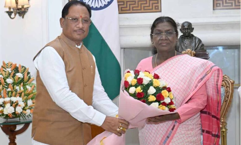मुख्यमंत्री विष्णुदेव साय ने आज नई दिल्ली स्थित राष्ट्रपति भवन में राष्ट्रपति द्रौपदी मुर्मू से सौजन्य भेंट की।