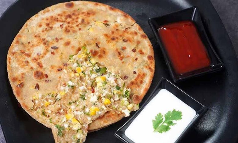 अब दूसरी तरफ घी या तेल लगाएं और फिर से पलट दें। पहली तरफ भी घी लगाकर दोनों तरफ से सुनहरा भूरा और कुरकुरा होने तक सेक लें। बस तैयार है आपका गरमागरम कॉर्न चीज पराठा।