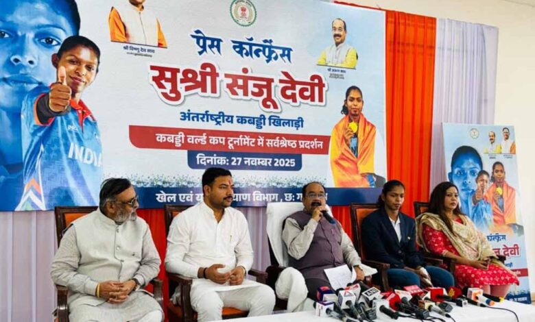 छत्तीसगढ़ की उभरती कबड्डी स्टार संजू देवी ने बांग्लादेश में 17 से 24 नवंबर 2025 तक आयोजित 2nd Women Kabaddi World Cup में शानदार प्रदर्शन करते हुए भारत को स्वर्ण पदक दिलाया. इसी उपलब्धि के बाद आज उपमुख्यमंत्री अरुण साव ने उनके साथ संयुक्त प्रेस कॉन्फ्रेंस कर राज्य में खुशी और गर्व व्यक्त किया.