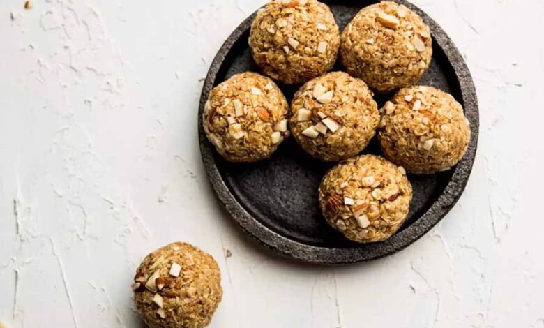 जब मिश्रण थोड़ा ठंडा हो जाए तो हाथों में थोड़ा सा घी लगाकर छोटे-छोटे लड्डू बना लें।