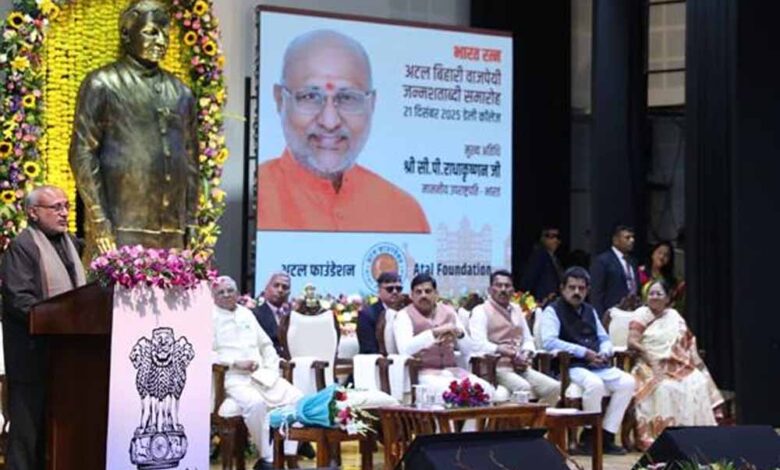 उपराष्ट्रपति श्री सी.पी. राधाकृष्णन ने कहा है कि स्व. श्री अटलजी केवल एक व्यक्ति नहीं, बल्कि एक विचार और मिशन थे। उनके कर्म, आदर्श और सुशासन की दृष्टि आने वाली पीढ़ियों के लिए मार्गदर्शक प्रकाश हैं। वे रविवार को इंदौर में आयोजित भारत रत्न स्व. श्री अटल बिहारी वाजपेयी जन्म शताब्दी समारोह को संबोधित कर रहे थे। समारोह में राज्यपाल श्री मंगुभाई पटेल ने कहा कि स्व. श्री अटल जी का जीवन ऐसे ग्रंथ की भाँति था, जिसका प्रत्येक पृष्ठ नैतिकता, उत्कृष्टता और राष्ट्रधर्म की राह दिखाता है। स्व. श्री अटल जी केवल राजनेता नहीं थे, बल्कि वे कवि, चिंतक, अद्भुत नेतृत्व गुणों से संपन्न, विनम्र, संवेदनशील और स्वाभिमानी राष्ट्रभक्त थे।