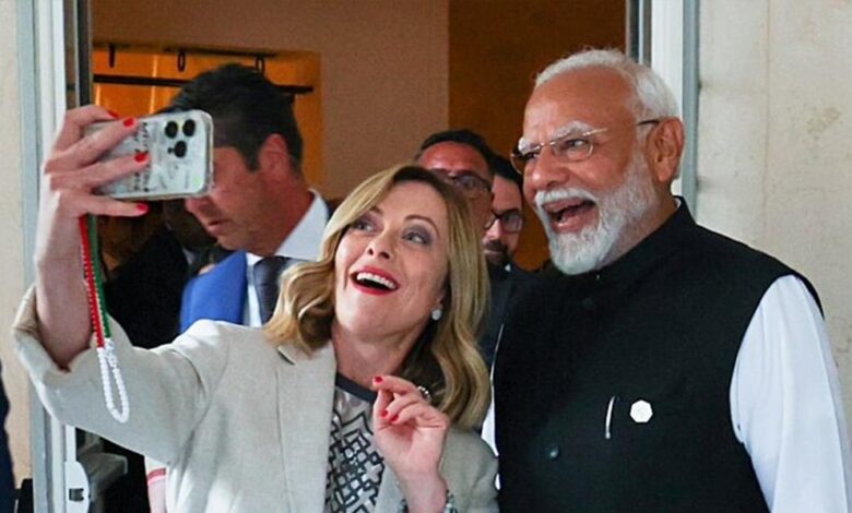 14 जून 2024 – पुगलिया, इटली (G7 शिखर सम्मेलन): मेजबान के तौर पर मेलोनी ने मोदी का स्वागत किया और उन्हें तीसरे कार्यकाल के लिए बधाई दी. बैठक में व्यापक वैश्विक मुद्दों पर चर्चा हुई.