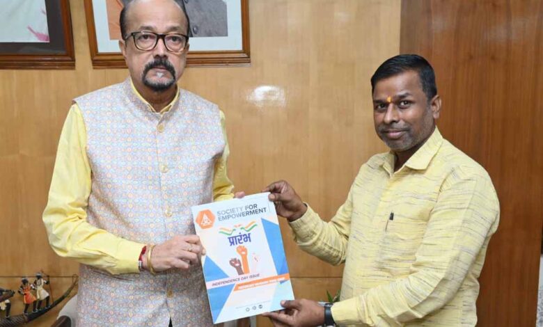 राज्यपाल रमेन डेका को आज राजभवन में ‘‘सोसाइटी फॉर एम्पावरमेंट‘‘ द्वारा प्रकाशित मासिक पत्रिका ‘‘प्रारंभ‘‘ की प्रति भेंट की गई। विशेष पिछड़ी जनजातियों पर केंद्रित इस विशेषांक का संपादन मानवविज्ञानी एवं राज्यपाल के उप सचिव डॉ. रूपेन्द्र कवि द्वारा किया गया है।