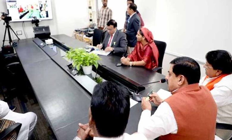 मुख्यमंत्री डॉ. मोहन यादव ने विधायक श्री मधु गहलोत के पुत्र श्री मोहित सिंह गहलोत और उनकी पुत्रवधू सहित आगर मंडी प्रांगण में सात फेरों के बंधन में बंधने वाले सभी 551 जोड़ों को ब्रिलिएंट कन्वेंशन सेंटर इंदौर से वीडियो कॉन्फ्रेंसिंग के माध्यम से उज्जवल भविष्य शुभकामनाएं दी। मुख्यमंत्री डॉ. यादव ने कहा कि प्रधानमंत्री श्री नरेन्द्र मोदी के ‘सबका साथ, सबका विकास’ के मूल मंत्र अनुरूप सामूहिक विवाह कार्यक्रम सभी अभिभावकों के विवाह आयोजन के स्वप्न को साकार करने में सहायक है।
