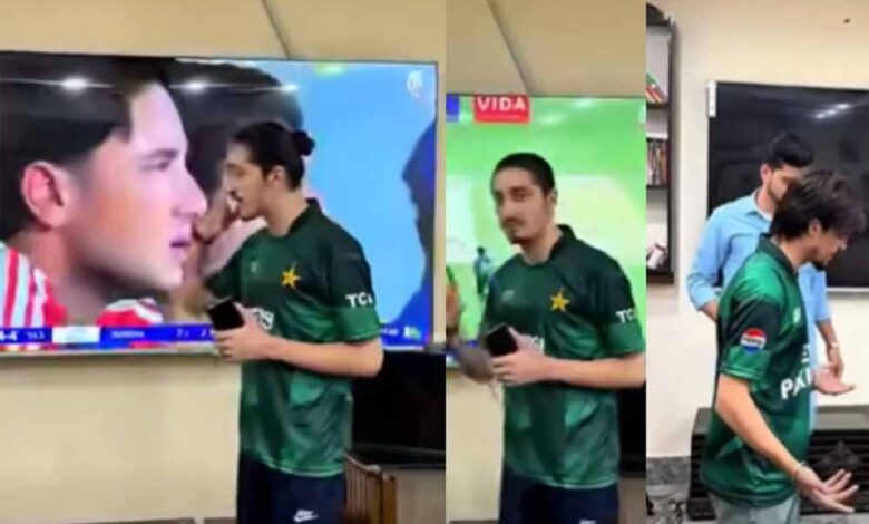 वीडियो में दिख रहा है कि एक बड़ी स्क्रीन वाली टीवी पर भारत-पाकिस्तान का मैच चल रहा है। अभिषेक शर्मा पाकिस्तानी गेंदबाजों की ताबड़तोड़ पिटाई कर रहे होते हैं। इसी दौरान जैसे ही वह एक सिक्स जड़ते हैं, पाकिस्तानी फैन ने वहां रखी एक छोटी टीवी को तोड़ देता है। तभी वहां मैच देख रहे उसके बाकी साथी तेजी से लपकते हुए उसे काबू में करते हैं। बाद में वह निराश होकर, मुंह लटकाकर वही बैठ जाता है।