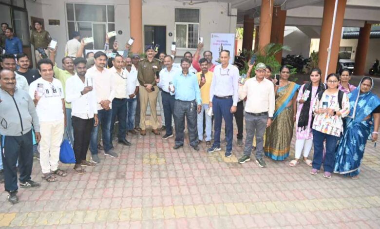 पुलिस अधीक्षक जबलपुर श्री सम्पत उपाध्याय (भा.पु.से.) के आदेशानुसार एवं अतिरिक्त पुलिस अधीक्षक अपराध श्री जितेन्द्र सिंह के निर्देशन में गुम हुये मोबाइल तलाशे जा रहे हैं। 6 नवंबर को पुलिस अधीक्षक कार्यालय में पुलिस अधीक्षक जबलपुर श्री सम्पत उपाध्याय (भा.पु.से.) के निर्देशन में अतरिक्त पुलिस अधीक्षक अपराध श्री जितेन्द्र सिंह द्वारा CEIR PORTAL के माध्यम से जबलपुर पुलिस द्वारा तलाशे गये गुम हुए 151 मोबाईल, जिनकी अनुमानित कीमत लगभग 28 लाख रूपये हैं, मोबाईल धारकों को पुलिस अधीक्षक कार्यालय में वापस किये गए।