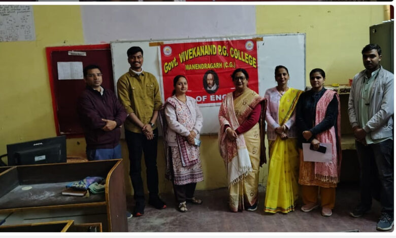 जिला एमसीबी शासकीय विवेकानन्द स्नातकोत्तर महाविद्यालय मनेन्द्रगढ़ में प्राचार्य डॉ. श्राबनी चक्रवर्ती के संरक्षण एवं मार्गदर्शन में ’रोल ऑफ जर्नालिज्म एंड मास कम्युनिकेशन इन सोशल इकोनोमिकल एंड कल्चरल सेनेरियों’ पर व्याख्यान का आयोजन अंग्रेजी विभाग, अर्थशास्त्र विभाग एवं आई.क्यु.ए.सी. के संयुक्त तत्वाधान में किया गया जिसमें मुख्य वक्ता महाविद्यालय के पूर्व छात्र शिवम् मिश्रा रहे जिन्होंने सत्र 2023-24 में बी.ए. स्नातक किया। वर्तमान में शिवम् मिश्रा का चयन भारतीय जन संचार संस्थान उड़ीसा में हुआ है। जहां वे पीजी डिप्लोमा इंग्लिस जर्नालिज्य में अध्ययनरत है इन्होंनेे व्याख्यान में अपने अध्ययन अनुुभव को साझा करते हुए कहा कि कड़ी मेहनत एवं जुनुन ही साधारण से आसाधरण बनने का मार्ग है।