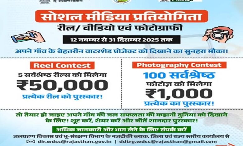 प्रतियोगिता में भाग लेने के इच्छुक प्रतिभागियों से आवेदन आमंत्रित किए गए हैं। यह प्रतियोगिता 31 दिसंबर 2025 तक आयोजित की जाएगी। कोई भी इच्छुक व्यक्ति जल संचयन संरचनाओं, बागवानी, कृषि वानिकी, तथा डब्ल्यूडीसी-पीएमकेएसवाई 1.0 एवं 2.0 सहित अन्य वाटरशेड योजनाओं के अंतर्गत निर्मित संरचनाओं और उनसे समुदाय को होने वाले लाभों को दर्शाते हुए 30 से 60 सेकंड का लघु वीडियो/रील या फोटो तैयार कर सकता है।