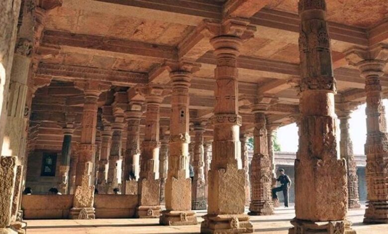 परिसर के उस हिस्से में, जहां मस्जिद निर्मित है, पत्थरों और गुंबदों पर ऐसी आकृतियां मिली हैं जो सामान्यतः मस्जिद निर्माण में नहीं देखी जातीं। कुछ शिलालेखों पर पशु आकृतियां उकेरी गई हैं, जबकि 50 से अधिक शिलालेखों पर अरबी और फारसी में आयतें लिखी पाई गई हैं।