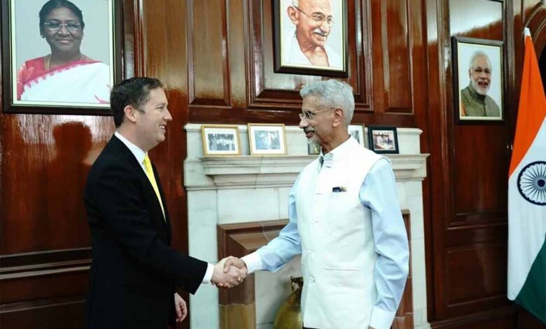 भारत-अमेरिका में उतार-चढ़ाव वाले चल रहे संबंधों के बीच अमेरिका के मनोनीत राजदूत सर्जियो गोर ने विदेश मंत्री एस जयशंकर से शनिवार को नई दिल्ली स्थित विदेश मंत्रालय में मुलाकात की। इस दौरान, दोनों ने भारत-अमेरिका संबंधों और इसके बढ़ते वैश्विक महत्व पर बातचीत की। 'एक्स' पर एक पोस्ट में, जयशंकर ने कहा, "आज नई दिल्ली में अमेरिका के मनोनीत राजदूत सर्जियो गोर से मिलकर प्रसन्नता हुई। भारत-अमेरिका संबंधों और इसके वैश्विक महत्व पर चर्चा हुई। उन्हें उनकी नई जिम्मेदारी के लिए शुभकामनाएं।"