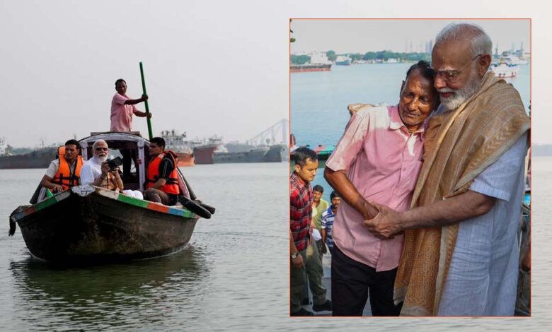 पीएम मोदी ने हुगली नदी में नाव की सवारी की, नाव चलाने वाले को गले लगाकर ₹1000 दिए; 5 दिन पहले खाया था झालमुड़ी