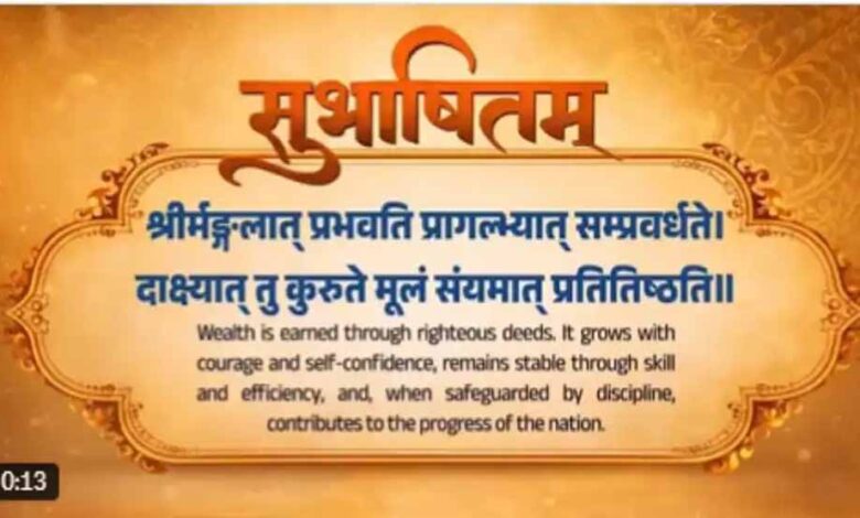 कुल मिलाकर प्रधानमंत्री इस श्लोक के जरिए यह कहना चाहते हैं कि समृद्धि और सफलता पहले अच्छे कर्मों से शुरू होती है, फिर आत्मविश्वास और परिपक्वता से बढ़ती है, कुशलता से मजबूत होती है और अंत में संयम/अनुशासन से हमेशा के लिए बनी रहती है. यह श्लोक जीवन में सफलता के चार चरणों को बहुत सुंदर तरीके से दर्शाता है. शुरूआत अच्छे कर्म से, विकास आत्मविश्वास से, मजबूती कुशलता से और स्थिरता संयम से. बहुत प्रेरणादायक श्लोक है!