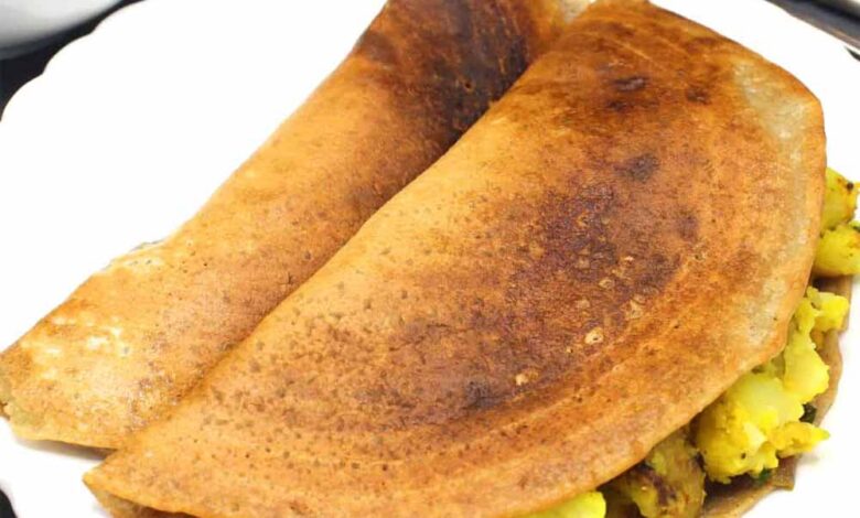 बीच में आलू मसाला रखकर डोसे की तरह मोड़ दें।