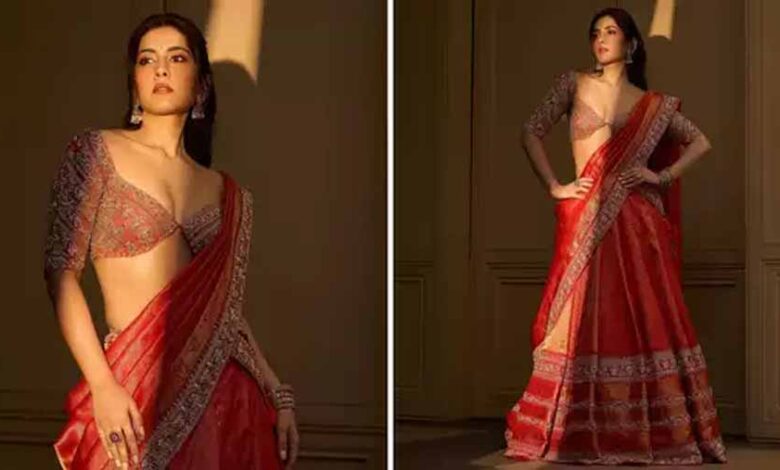 मकर संक्रांति के त्योहार के लिए एक्ट्रेस राशि खन्ना साउथ इंडियन लुक में तैयार हुई थीं। उन्होंने क्लोदिंग ब्रांड Kavitha Gutta के कलेक्शन से ऑरेंज कलर का कांजीवरम सिल्क लहंगा पहना था, जिसे स्टाइल करके और भी ज्यादा खूबसूरत बनाने का काम सेलिब्रिटी स्टाइलिस्ट प्रीतम जुकलकर ने किया था। इस लहंगे में एक्ट्रेस बहुत ही ज्यादा सुंदर लग रही थी।