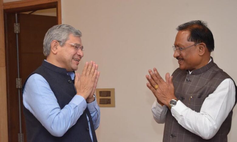 रायपुर : मुख्यमंत्री विष्णुदेव साय ने केंद्रीय रेल मंत्री अश्विनी वैष्णव से की सौजन्य मुलाकात