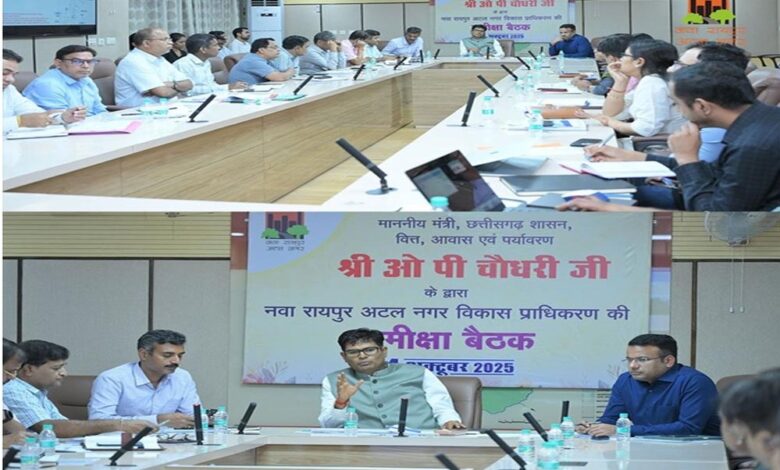 नवा रायपुर अटल नगर विकास प्राधिकरण में आज वित्त, आवास एवं पर्यावरण मंत्री ओ.पी. चौधरी की अध्यक्षता में निवेश, अधोसंरचना विकास और जनसुविधाओं से संबंधित कार्यों की प्रगति की समीक्षा बैठक आयोजित हुई।