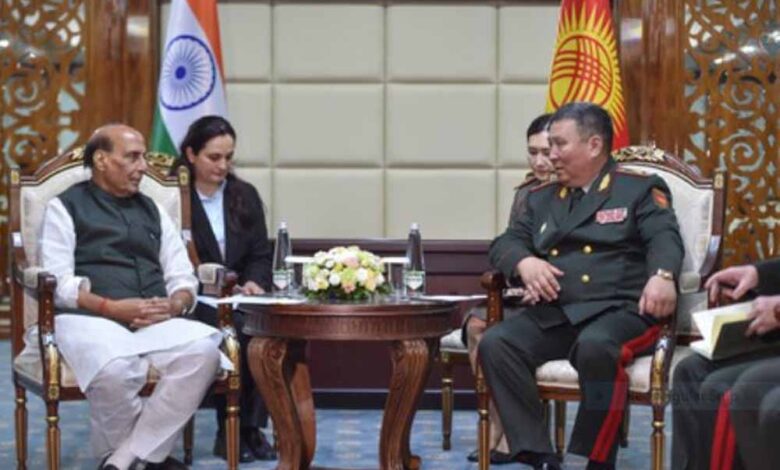 शंघाई सहयोग संगठन की बैठक के दौरान रक्षा मंत्री राजनाथ सिंह ने मंगलवार को कई अहम द्विपक्षीय मुलाकातें कीं। इस दौरान उन्होंने किर्गिस्तान के रक्षा मंत्री मेजर जनरल मुकाम्बेतोव रुसलान मुस्तफायेविच के साथ विस्तृत बातचीत की। राजनाथ सिंह ने बेलारूस के रक्षा मंत्री लेफ्टिनेंट जनरल विक्टर ख्रेनिन के साथ भी महत्वपूर्ण बैठक की। किर्गिस्तान की राजधानी बिश्केक में शंघाई सहयोग संगठन की यह बैठक आयोजित की गई है। यहां विभिन्न देशों के प्रतिनिधियों से मुलाकात में बातचीत का फोकस क्षेत्रीय सुरक्षा, सैन्य सहयोग और आपसी संबंधों को और मजबूत करना रहा। उन्होंने किर्गिस्तान के रक्षा मंत्री से मुलाकात के बाद कहा कि यह बैठक बेहद उपयोगी और सार्थक रही। उन्होंने स्पष्ट किया कि भारत और किर्गिस्तान गणराज्य के बीच रणनीतिक साझेदारी है, जो लोकतंत्र, विकास, संस्कृति और समृद्ध विरासत जैसे साझा मूल्यों पर आधारित है। राजनाथ सिंह ने यह भी कहा कि भारत, किर्गिस्तान के साथ अपने संबंधों को बेहद महत्व देता है और इस साझेदारी को और आगे बढ़ाने के लिए प्रतिबद्ध है। दरअसल, दोनों देशों के बीच सहयोग कई क्षेत्रों में फैला हुआ है।