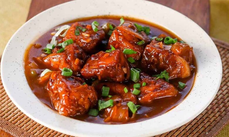 फिर इसमें सोया सॉस, टोमैटो केचप, रेड चिली सॉस, सिरका, चीनी, काली मिर्च पाउडर और नमक डालकर अच्छी तरह मिलाएं।