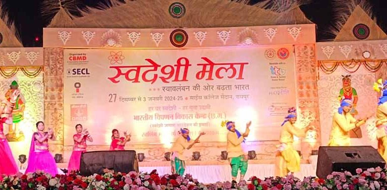 स्वदेशी मेला स्वावलंबन की ओर बढ़ता भारत साइंस कॉलेज मैदान रायपुर में समापन अवसर पर छत्तीसगढ़ के वरिष्ठ लोक कलाकार डॉ.पुरूषोत्तम चंद्राकर कृत लोकरंजनी लोक कला सांस्कृतिक मंच रायपुर द्वारा शानदार सांस्कृतिक प्रस्तुति दी गई।