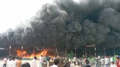 सब्जी मंडी में भीषण आग: लाखों का नुकसान, फायर ब्रिगेड की दमकल कर रही आग बुझाने के प्रयास