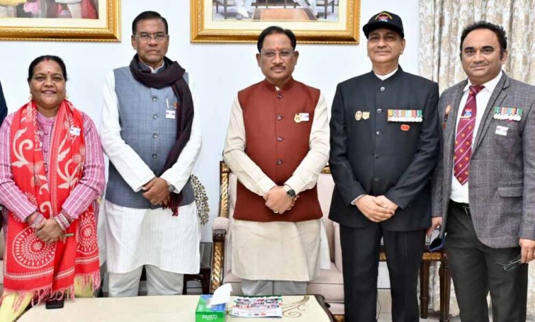मुख्यमंत्री विष्णु देव साय से आज राजधानी रायपुर स्थित मुख्यमंत्री निवास कार्यालय में छत्तीसगढ़ राज्य सैनिक कल्याण बोर्ड के सचिव ब्रिगेडियर विवेक शर्मा ने सौजन्य भेंट की। इस अवसर पर उन्होंने मुख्यमंत्री साय को सशस्त्र सेना झंडा दिवस के प्रतीक स्वरूप सम्मान बैज लगाया तथा संचालनालय सैनिक कल्याण द्वारा संचालित विभिन्न कल्याणकारी गतिविधियों एवं योजनाओं की विस्तृत जानकारी प्रदान की।