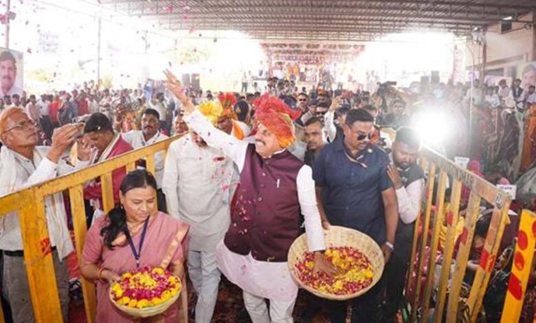 अक्षय तृतीया के शुभ अवसर पर मुख्यमंत्री ने नव-दंपत्तियों पर पुष्पवर्षा कर दिया आशीर्वाद