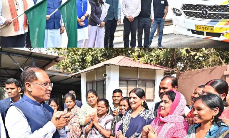 मुख्यमंत्री विष्णु देव साय ने आज मुख्यमंत्री निवास से राष्ट्रीय ग्राम स्वराज अभियान के अंतर्गत बस्तर संभाग के जिला पंचायतों के निर्वाचित प्रतिनिधियों के दल को प्रशिक्षण सह अध्ययन भ्रमण के लिए रवाना किया। इस अवसर पर उन्होंने सभी पंचायत प्रतिनिधियों को सकुशल एवं सफल यात्रा के लिए शुभकामनाएँ दीं तथा दो बसों को हरी झंडी दिखाकर दल को रवाना किया।