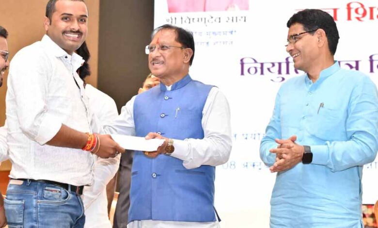 मुख्यमंत्री साय ने कहा कि प्रदेश के युवाओं को पुलिस विभाग, विद्युत विभाग, सहकारिता विभाग, लोक स्वास्थ्य यांत्रिकी विभाग, आदिम जाति विकास विभाग सहित कई अन्य विभागों में नियुक्तियाँ दी जा रही हैं। उन्होंने कहा कि आने वाले समय में उच्च शिक्षा विभाग में 700 सहायक प्राध्यापकों और स्कूल शिक्षा विभाग में 5000 शिक्षकों की भर्ती की जाएगी।