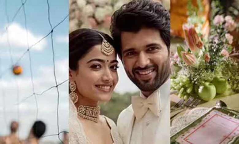 रश्मिका और विजय की शादी उदयपुर के मेंमेटोज बाई आईटीसी होटल्स में हुई। सोशल मीडिया पर वेन्यु के बाहर का एक वीडियो वायरल हो रहा है। इस वायरल वीडियो में रश्मिका और विजय की शादी में पहुंचे कुछ गेस्ट पैप्स को मिठाइयां बांटते नजर आए।