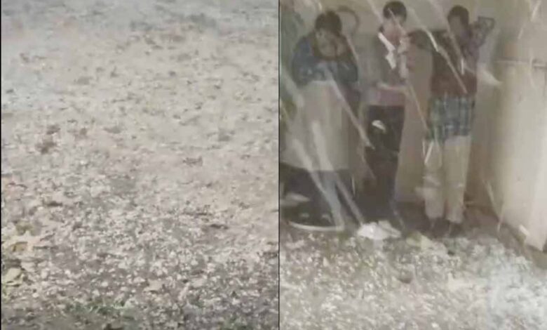 हालात कुछ ऐसे हो गए कि शहर के मुरार, आनंद नगर, बहोड़ापुर, विनय नगर समेत सिटी सेंटर इलाकों में इतनी अधिक ओलावृष्टि हुई कि वहां सफेद चादर पसर गई. कश्मीर जैसा मंजर दिखाई देने लगा. पद्मा राजे कन्या हायर सेकेंडरी स्कूल का दृश्य देखें:-