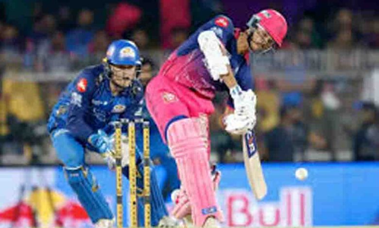 आईपीएल 2026 का 13वां मुकाबला मंगलवार को बरसापारा क्रिकेट स्टेडियम, गुवाहाटी में राजस्थान रॉयल्स (आरआर) और मुंबई इंडियंस (एमआई) के बीच खेला गया। बारिश की वजह से 11-11 ओवर के इस मैच में एमआई को 27 रन से हार का सामना करना पड़ा। आरआर की जीत में अहम भूमिका निभाने वाले सलामी बल्लेबाज यशस्वी जायसवाल को